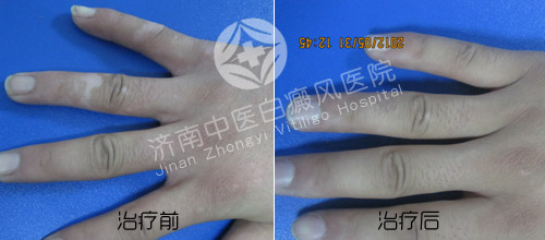 治疗效果:王丽在网上了解到济南中医白癜风医院多年治疗白癜风口碑良好,来院配合治疗不久手部及面部的白斑明显消退。>>>在线咨询治疗的费用情况